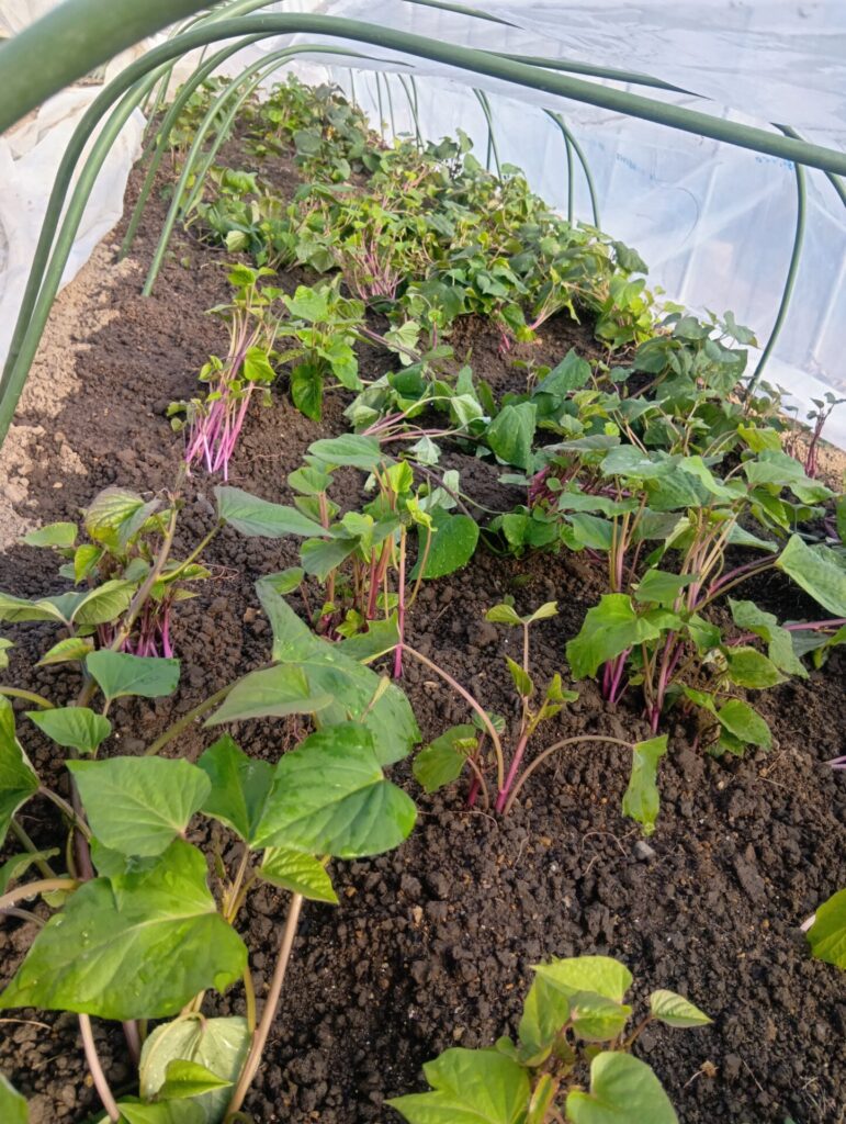 さつまいも苗🍠農場ブログ2026年4月5日 昨日まで2泊3日の沖縄旅行を楽しんだので、今日からバリバリ働きます💪 さつまいもの芽が伸びて家の中では狭くなってきたので、ビニールハウスの中にトンネルを作って移動しました! 260405153213300 検索カテゴリー お米 よーいDON 貞広一家の日常 農場ブログ